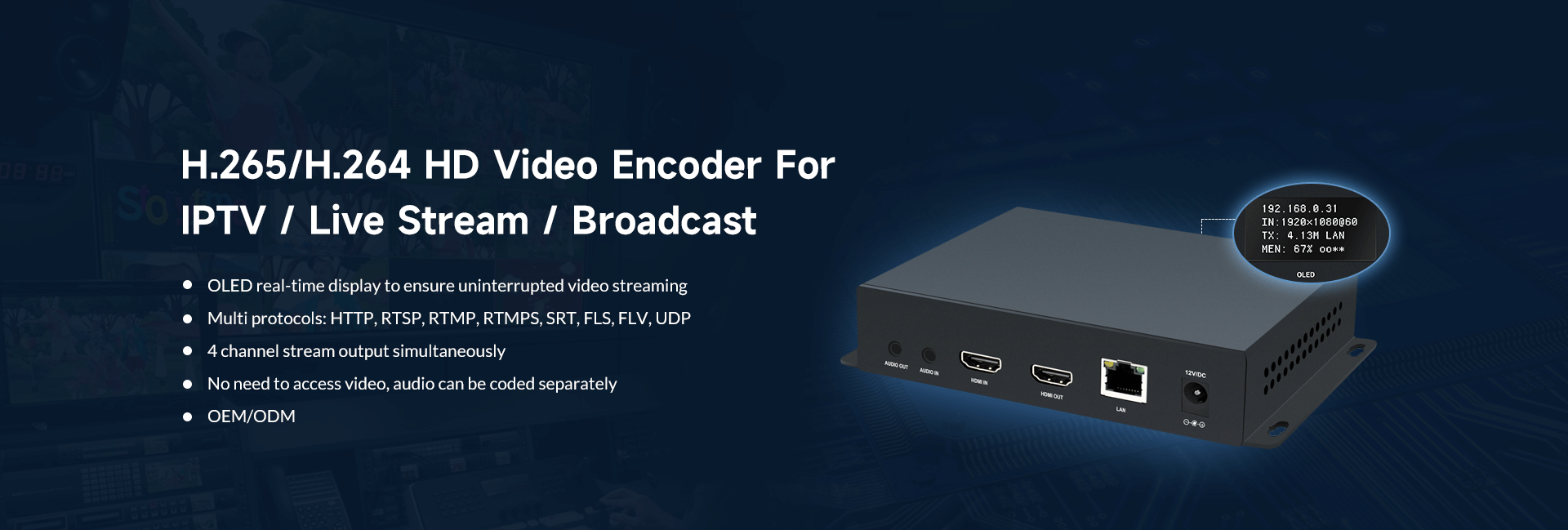 Codificador IPTV H265 H264 HDMI com Codificador De Transmissão IP OLED SRT RTSP RTMP RTMPS